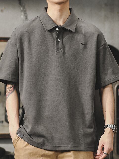 アメリカンレトロポロシャツメンズ夏シンプルスタイル厚手メンズゆったり大きいサイズメンズ半袖Tシャツポールシャツ