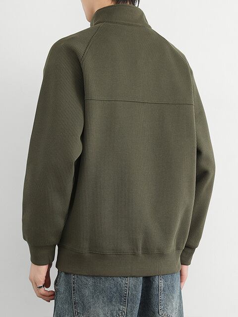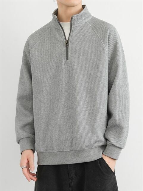 メンズハーフジップスタンドカラースウェットシャツ春秋冬アメリカンレトロプラスベルベット厚手メンズ無地カジュアルジャケット