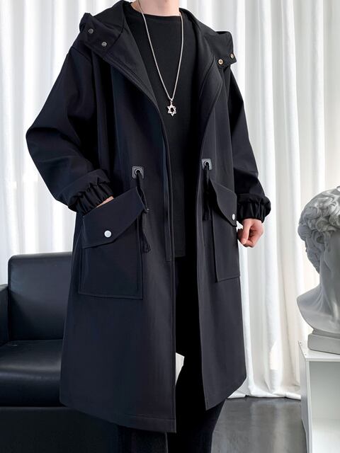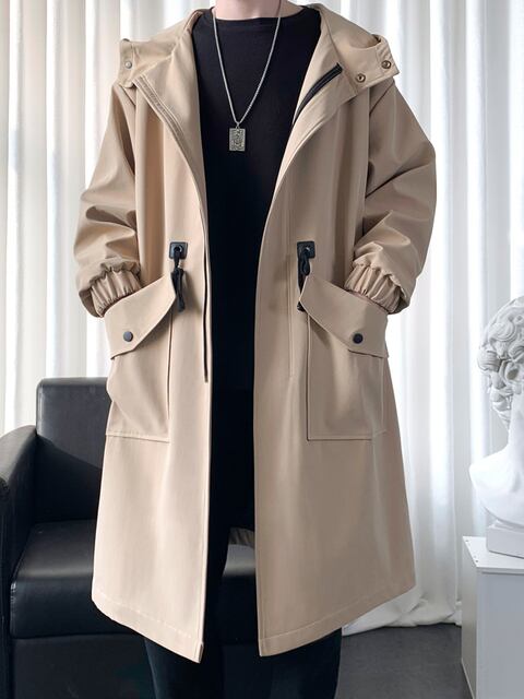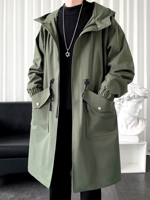 メンズウィンドブレーカージャケットメンズハイエンドミドル丈コート2025新作秋冬ロング大きいサイズメンズ服