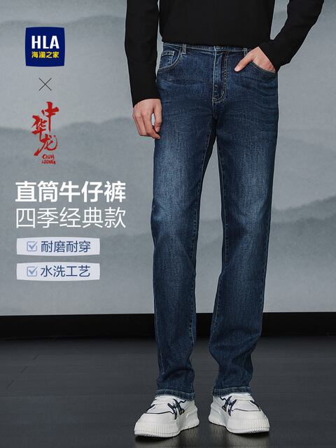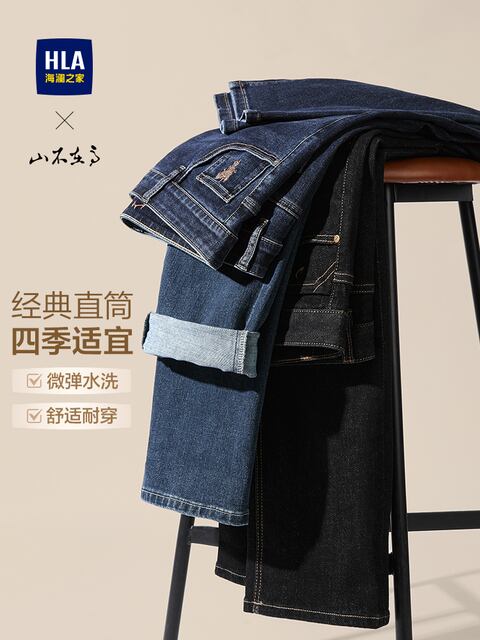 HLA/HaiLan Home Mountain No Longer High ブラックジーンズ 25 秋冬新作 ベルベットオプション ストレートロングパンツ メンズ