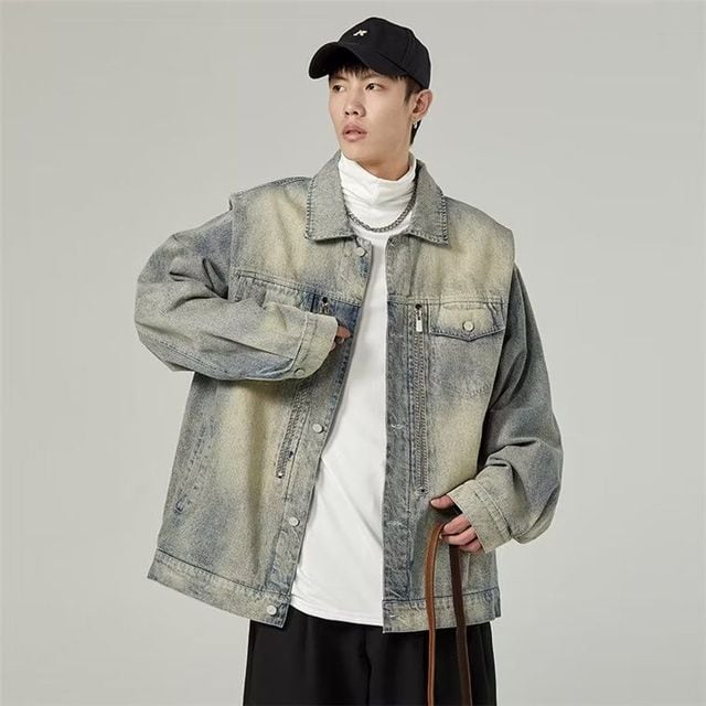 メンズ用アメリカンレトロハイエンドデニムジャケット、2025年秋冬新作トレンドブランドニッチウォッシュジャケットトップ。