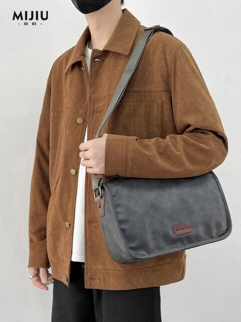 ヴィンテージメンズクロスボディバッグ、トレンディなカジュアルレザーバッグ、メンズショルダーバッグ、通勤用バックパック
