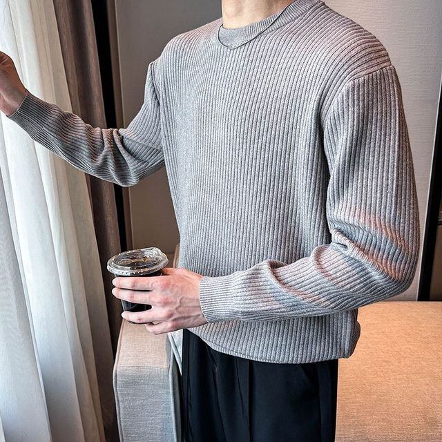 冬にぴったりのメンズグレーニットタートルネックセーターは、大人っぽく洗練されたスタイルを演出します。ハイネックのプルオーバータイプで、重ね着やインナー使いに最適です。