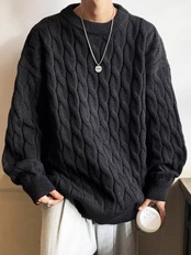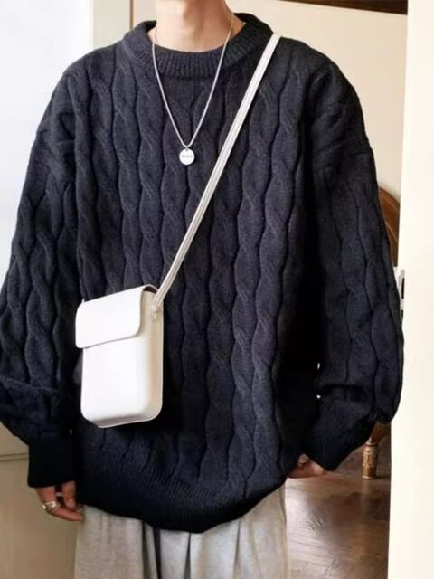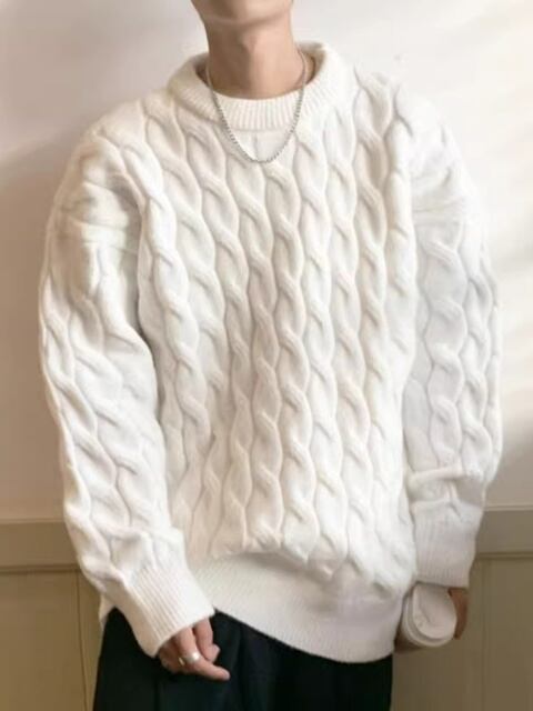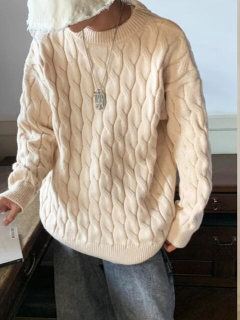 ケーブルニット セーター。秋冬に最適な、カジュアル ラウンド ネック ニットウェア。