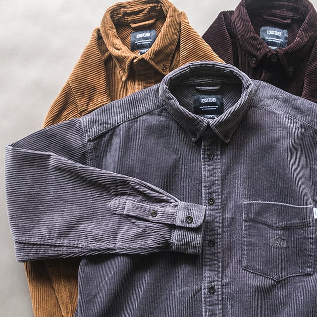 メンズの厚手シャツ、カジュアルなコーデュロイの長袖シャツ、そして秋冬にぴったりのクールなアウターウェア